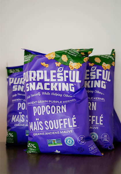 Discover The Purple TasteHusband and wife team Matthew and Jasmin von Teichman launched Purplesful  with the goal of finding a new way to support kids charities, through a meaningful chunk of Corporate profits. They created the mission before the Product and eventually discovered Purple popcorn as the perfect product to do that!