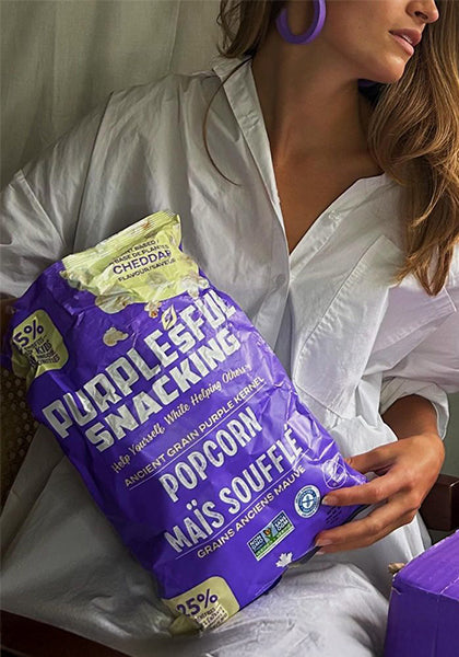 Ordinary popcorn comes from yellow corn.We use ancient grain purple corn—naturally rich in anthocyanins, a powerful antioxidant that gives blueberries their superfood status. Ours? Popped to perfection.